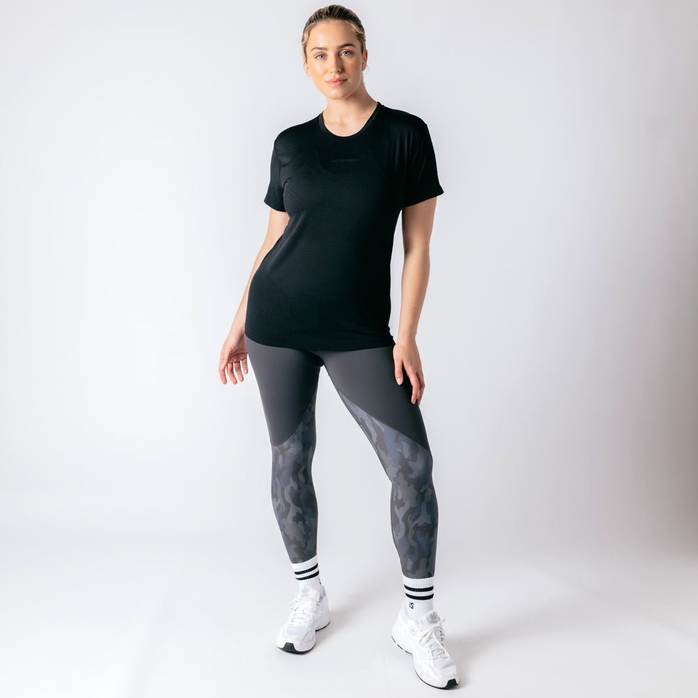 Ready to unleash your inner athlete? Our Laser seamless training tee is waiting to join you on your fitness journey. This t-shirt is built to last. The durable nylon blend fabric stands up to repeated wear and tear, ensuring you can rely on it for countless training sessions. Forget about constantly adjusting your clothes, feeling constricted, or distracted by discomfort. Our seamless design hugs your body, providing unwavering support and comfort. It moves with you, allowing for a natural range of motion, so you can focus on perfecting your form and pushing through that last rep.