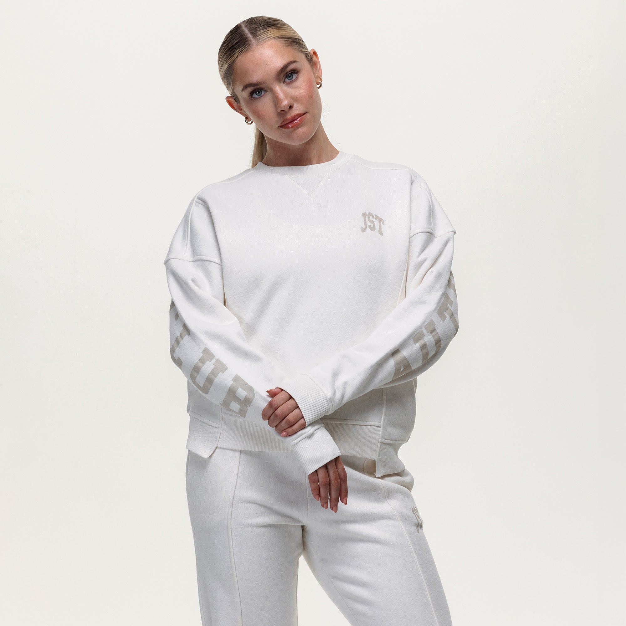 •Athletic Style: Sporty seam detailing and bold sleeve prints give the sweatshirt an active, modern edge.